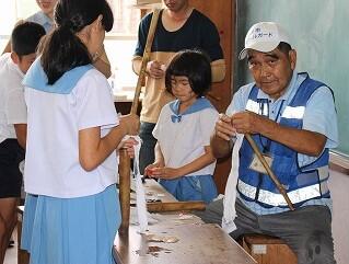 今日は、夏休みに入って最初の日曜日です。にっこばまちづくり協議会の主催で、「そうめん流し」が行われました。お箸と器は、竹で自分で作ります。地域のボランティアの方が、丁寧に作り方を教えてくださったので、小学生でも安全に上手にはしをつくることができました。自分で手作りしたはしと器で青空の下で食べるそうめんは最高でした。