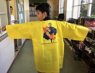 23日(金)この日も晴天。新調したはっぴを着て、6年生がこどもみこしに参加しました。