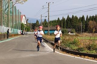 本校は、学校周辺の道路も含んだコース設定で、沿道でも、保護者や地域の方々の声援を受けつつ、自分の記録を更新できます。声援ほど自分に打ち勝つ意味でも心強いものはありません。