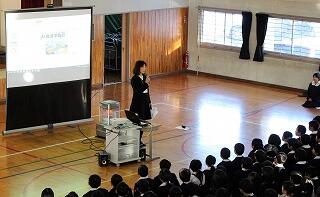 2月12日、学校薬剤師を招いて、薬物乱用防止教室を開催しました。