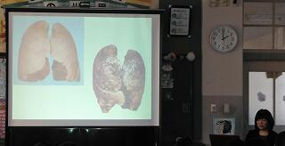 次に、薬には、体によくないものもあるという話から、たばこ、お酒、危険ドラッグの話へと移っていきました。