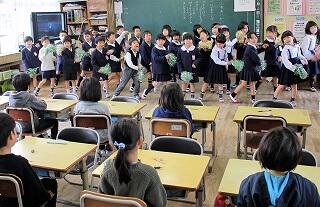 3月4日、3校時に来年入学予定の子どもたちが、1年生の教室で交流活動を行いました。近くの幼稚園や保育園からは、先生達が子どもたちを引率して、参観していただきました。