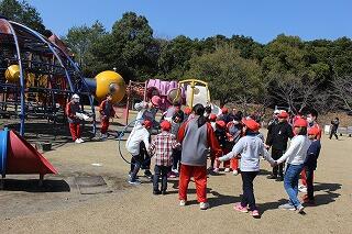 弁当を食べたら、春の青空の下、思いっきり身体を動かして遊び回っていました。