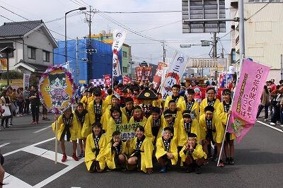 昨年度PTAで新しく仕立てた黄色い法被が、祭りに色を添え、通りに子どもたちの威勢のいい声が響きました。