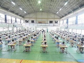 6月28日に、全校児童159名が体育館に集まって、漢字・計算コンテストをしました。これは、基礎的・基本的な知識・技能を確実に身に付けさせることが目的ですが、それ以外にも全校一斉に行うことで普段感じない緊張感を味合わせたり、正しい書くときの姿勢(立腰)や鉛筆の握り方などが身に付いているかどうかを確認したりする場でもあります。どの子も一生懸命取り組んいました。第2回目は2月21日に計画されています。