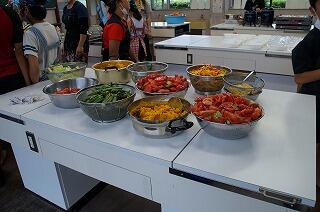 昨年は台風の接近で中止になりましたが、今年は天気に恵まれました。7月23日と24日は、6年生が校内でキャンプを行っています。夕食は浜田ストアーに自分たちで買い出しに行って、カレーとサラダを作りました。差し入れの野菜もたくさんあり、サラダの具材も色とりどりでおいしそうです。竹でご飯をたく初めての経験もしました。
