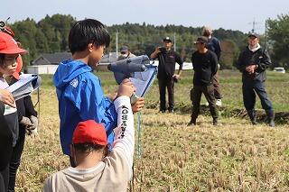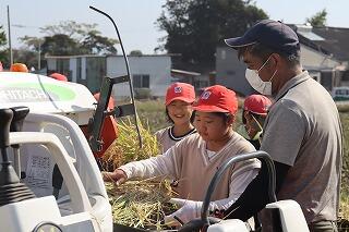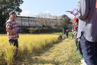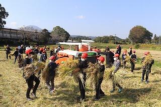 天気にも恵まれ、5・6年生が、稲刈り・脱穀を体験しました。