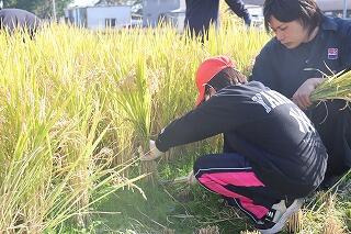 最初は恐る恐るの稲刈りでしたが、みるみる手際よくなっていく子どもたちの姿が頼もしかったです。