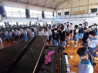 特に、全校で歌った校歌は、今まで聞いたことのない響く歌声でした。