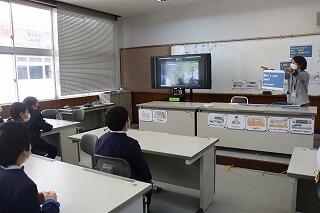 5年生が須木小の5年生と一緒に、オンラインで英語の授業をしました。