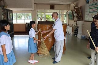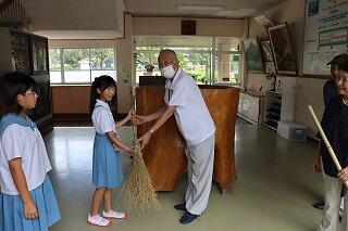 西小林小学校を卒業されて、今回喜寿を迎えられた皆様方から、竹ぼうき30本を寄贈していただきました。