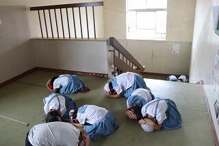 それぞれの場所で地震が起こったらどうするかの訓練をしました。