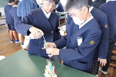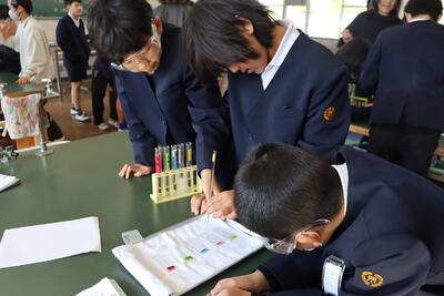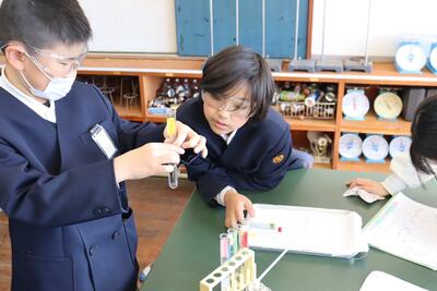 今日は6年生が理科の授業で「水溶液の特徴」について実験を行いました。教室には試験管や薬品が並び、子どもたちはグループごとに協力しながら観察を進めました。最後には、観察した特徴をまとめ、どの水溶液がどんな性質を持っているのかを確認しました。実際に手を動かしながら学ぶことで、教科書だけではわからない発見がたくさんあったようです。