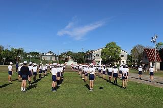 開会式、ラジオ体操、退場、エール交換、応援、役員招集の練習をしました。