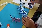 4年生は紙ねんどに色をつけて創作活動、3年生は初めて「クギ打ち」のある作品づくりを行っています。独創性豊かな作品になりそうです。
