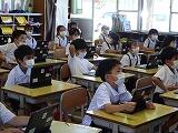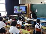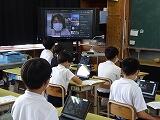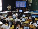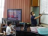 夏休みのタブレットの持ち帰りに備えて、情報モラルの授業をオンラインで行いました。職員室の萩原先生が各学級の自分用のタブレットと繋いで、家庭でのタブレットの使用方法などを説明しました。