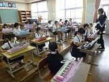 八田先生のピアノにあわせて、ピアニカで「かえるのうた」を輪奏しています。ちょうどカエルが鳴く季節ですね。