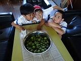 学校にある梅の木に梅がたわわに実っています。梅の実をたくさん収穫しました。