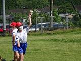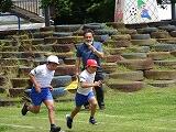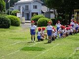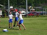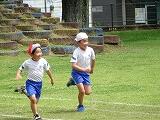 4チームに分かれてリレーをしています。リレーゾーンでリードしてバトンパスできるようになりました。