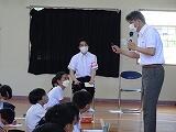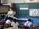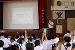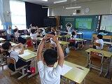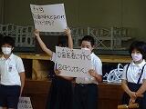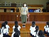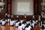 全校朝会で保体委員会が月目標「手洗い・歯みがきをしっかりしよう」についてのクイズをしました。その後、保健室の前田先生から、マスクの着用についての話がありました。コロナも熱中症も気をつけましょう。