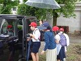 1年生は初めての集団登校です。ピカピカのランドセルを背負って、高学年の班長さんの後ろについて登校しました。