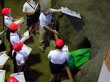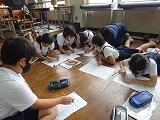 校外学習の町探検で学校の周りを歩いて調査します。学校に帰ったら、早速調べたことを地図に書き込んでいます。