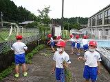 来週のプール開きに向けて、5・6年生がプール掃除をしました。2年生も草取りを手伝ってくれました。来週はピッカピカのプールでみんな気持ちよく泳げます。