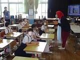 エムティア先生に自己紹介や英語の天気の言い方を教えてもらいました。みんな英語の勉強が大好きです。