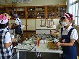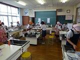 家庭科の初めての調理実習で、ほうれん草のおひたしとゆでいもを作っています。みんな協力して役割分担しながら、けがのないように丁寧に調理をしています。