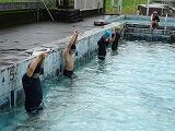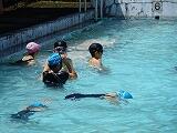 梅雨が明け、夏真っ盛りのプールでみんな楽しく泳いでいます。とっても気持ちいいですね。