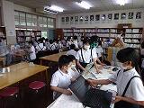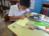 ホタルについて図書資料やインターネットで調べ、分かったことをまとめています。ホタルについてのくわしい話が早く聞きたいですね。