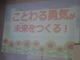 運営・環境・保体・放送・図書の各委員会から全校の皆さんへのお願いなどの話がありました。その後、代表委員会で決まった児童会スローガン「心を一つにレベルアップか・み・あ・り」の発表がありました。