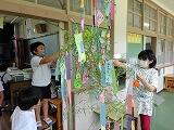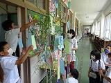 保護者の吉丸さんが笹竹を学級数分持ってきてくださいました。子供達は短冊に願い事を書いて飾っています。東方小学校の子供達みんなの願い事がかないますように・・・