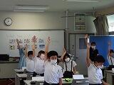 金曜日は英語の日です。三松小の川野先生とALTのエムティアさんが来て英語の勉強をします。久しぶりの英語を楽しく学習しています。
