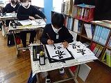 今週は全学年、書き初め会です。4年生は毛筆で「出発」、5年生は毛筆で「希望」と書きます。一筆入魂で心を込めて書いています。