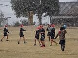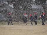 雪が舞う中、子供達は「寒い、寒い」と言いながらも元気に遊んでいます。風邪を引かないようにしてくださいね。