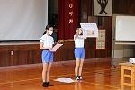 運動会に向けての初めての小学校・中学校の合同練習です。今日は赤団・白団に分かれて応援の練習です。どちらの団もチームワークがいいです。
