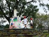 8日(木)の運動会総予行練習に向けて、輪太鼓踊の練習と総予行の準備をしました。心配された台風も通り過ぎて気持ちいい風が吹く中で、テント張りや椅子並べ、係打合せができました。
