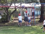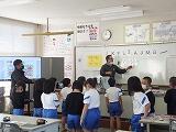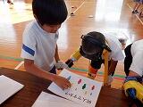 今日はパウラ先生がきて、3年生はアルファベットを習っています。リズムに乗って楽しく覚えています。5年生はみんばが輪になって今からゲームが始まります。