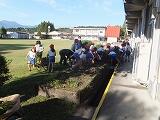 6年生が、学校の近くの地層の見学に行きました。工事の仕事中でしたが、見学に協力していただきました。資料やお土産までいただきました。シラスが約12mも堆積しているのを実際に見て、びっくりしていました。ご協力ありがとうございました。
