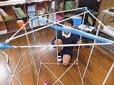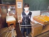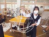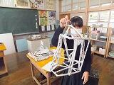 新聞紙を紐状にして繋げて、猫や馬、弓矢や鳥かごなど、いろいろな立体を作っています。