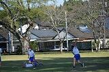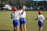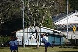 今日も元気に運動場で遊んでいます。上級生と下級生が仲良く遊んでいます。