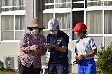 小林こすもす支援学校の1・2年生が校長室にきてくれました。みんなハロウィンのおばけに変身していたので、ひがやっぴーに変身して出迎えました。