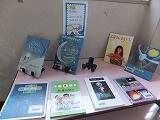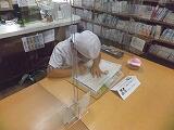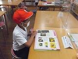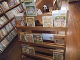 図書室では「十五夜」「秋の草花・虫」「もりのおみせやさん」の本が紹介されています。お昼の放送で押方先生が「もりのおみせやさん」を紹介した後、早速借りにきていました。