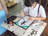 姿勢を正して、「友達」という字をゆっくりと丁寧に書いています。