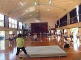 ゴム紐を使って走り高跳びの練習をしています。どんどん高さが上がって、新記録に挑戦です。
