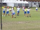 運動会に向けて東方中学校との合同練習がありました。応援の練習や係の打合せをしています。3・4年生は大玉ころがしの練習です。