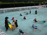 3つのグループに分かれて練習しています。25メートル泳げるようになったグループは平泳ぎに挑戦しています。みんなフォームがきれいになってきています。
