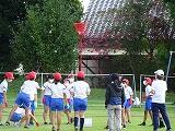2年生と3年生が一緒にドリブルの練習をしています。やわらかいボールなので突き指をしません。慣れてきて、どんどんスピードがあがってきています。