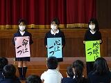 徒然草を暗唱して、みんなの前で発表しています。みんなよく覚えていますね。